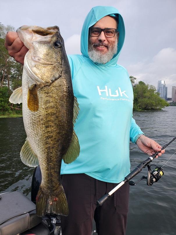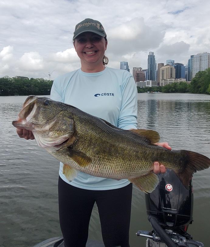 Lady Bird Lake is at a normal level with clear water offering roughly 4–6 feet of visibility and water temperatures around 69 degrees. Bass are positioned shallow, primarily relating to flats with submerged vegetation. Most fish appear to be in a post-spawn phase, with very few bass still being found on beds.